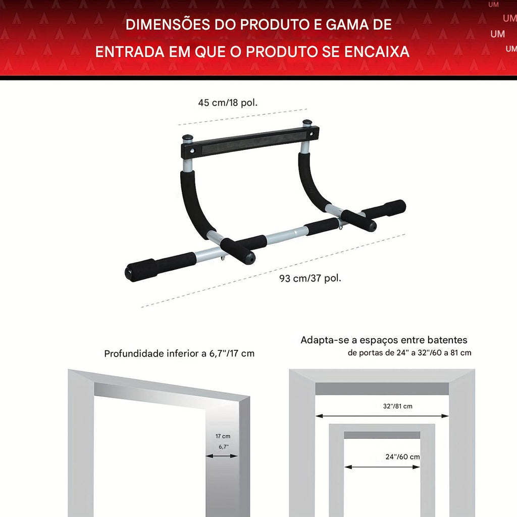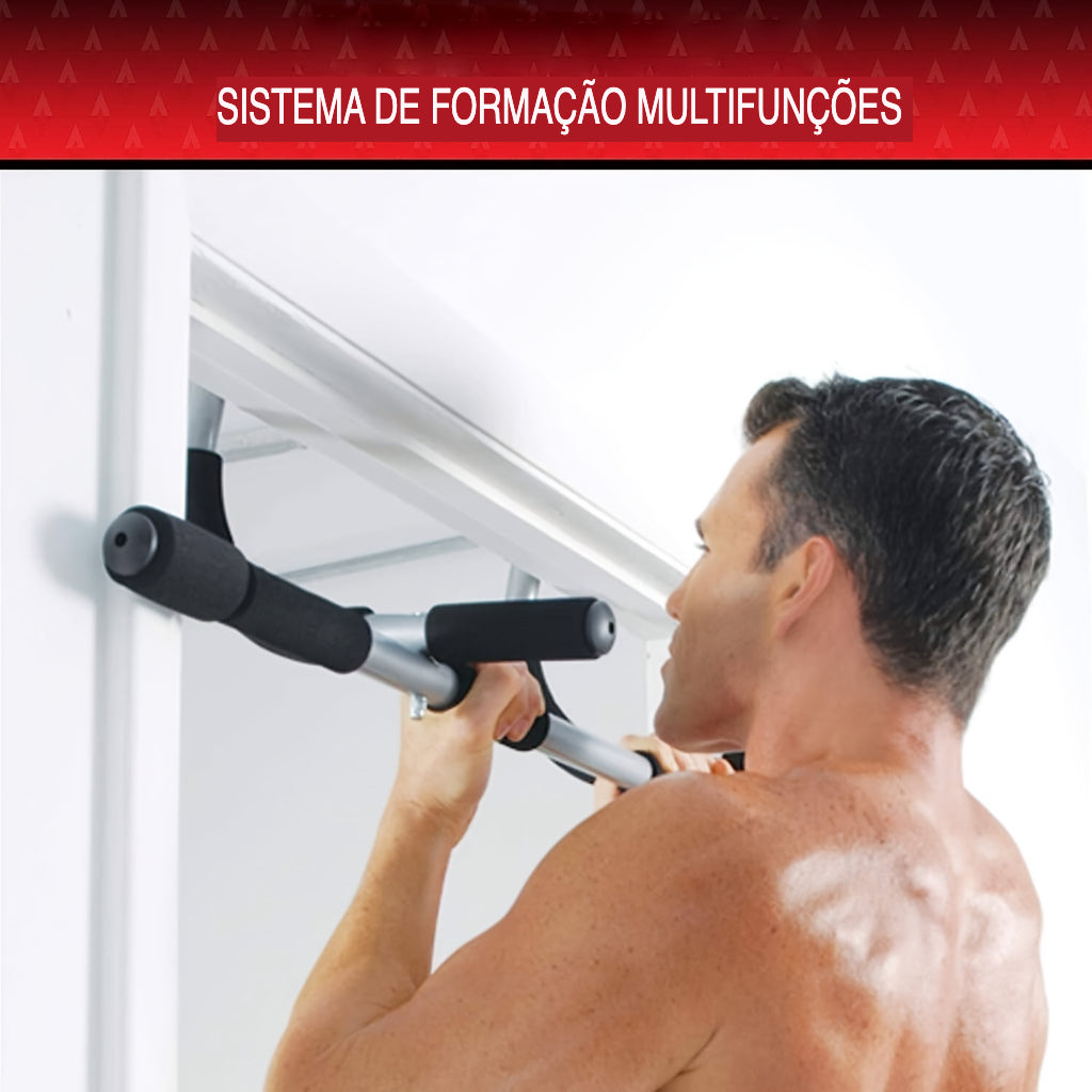A Barra de Elevação Portátil Ajustável é a solução ideal para transformar qualquer porta em um espaço de treino.