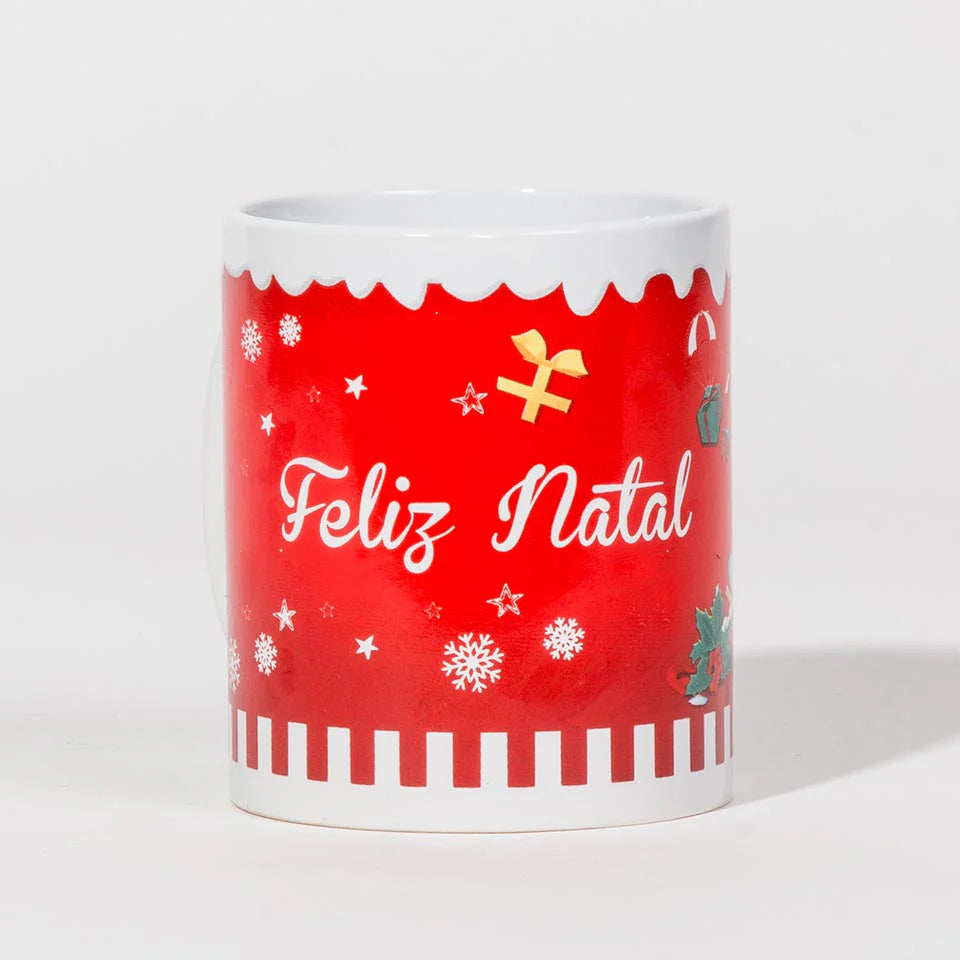 A frase “Feliz Natal” em destaque acrescenta um toque tradicional e caloroso, tornando-a indispensável para a época festiva.
